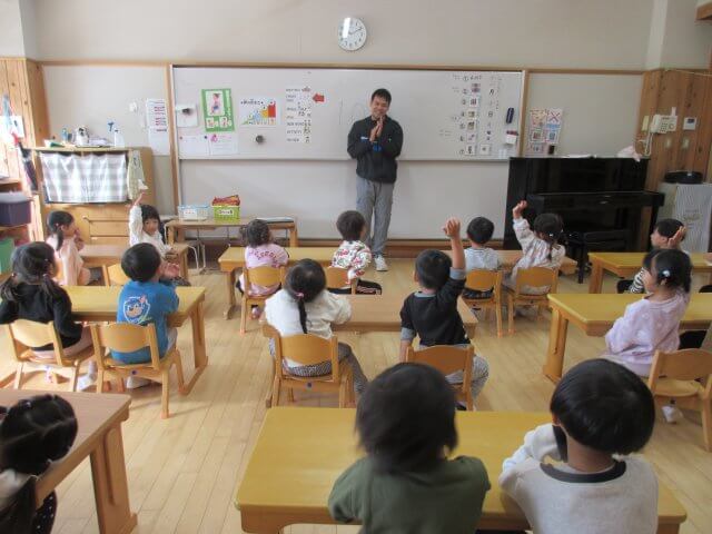 ALTの先生と楽しく遊びながらLesson!! みんなとても楽しみながら英語を学んでいました。