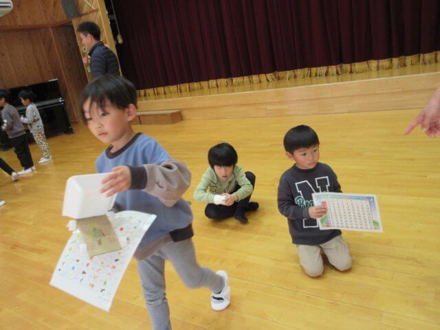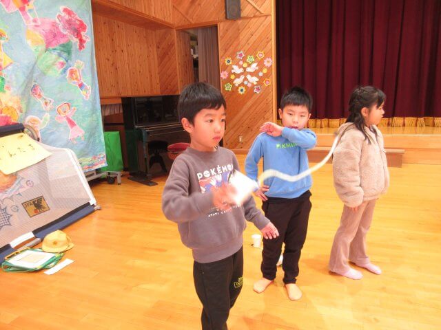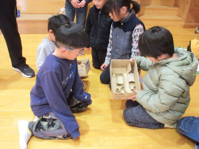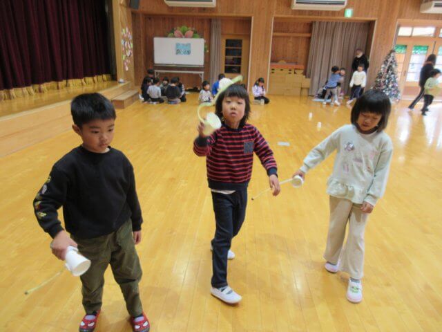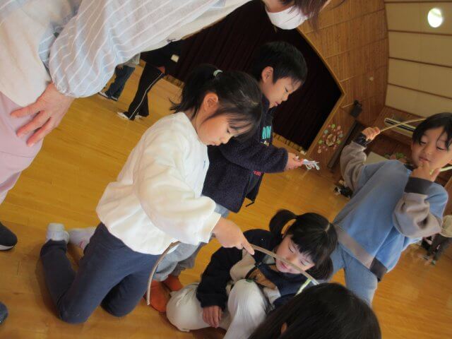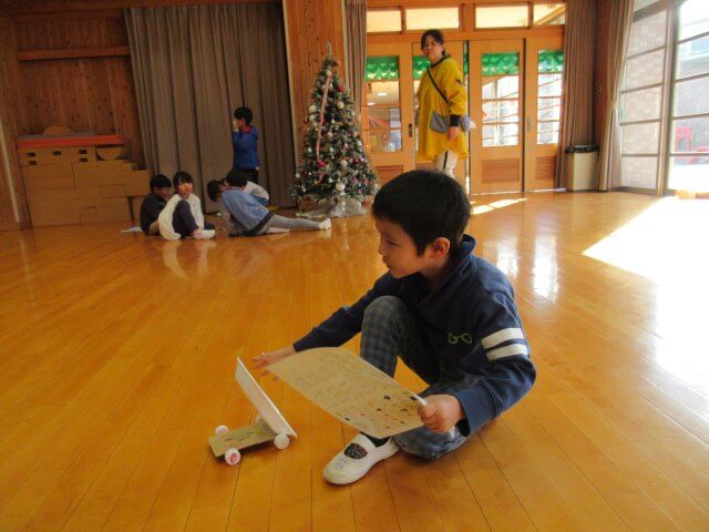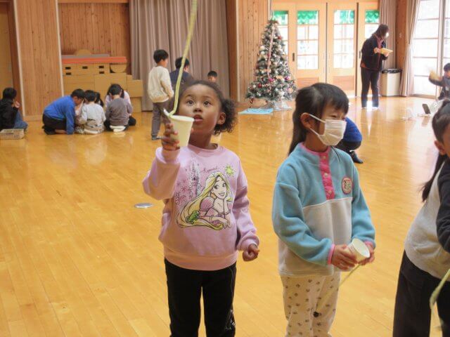 にじ組の子どもたちは、見たこともないおもちゃに目を輝かせて遊びを楽しんでいました。