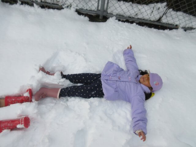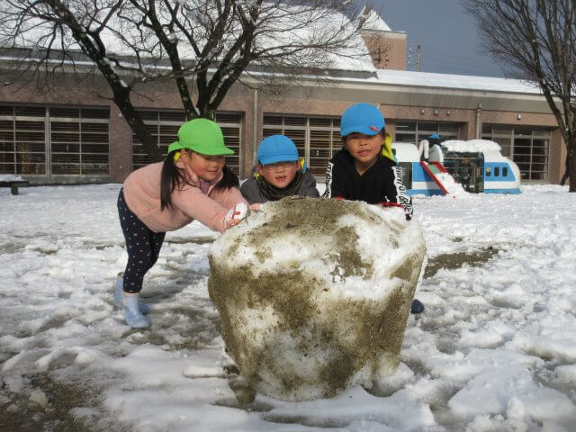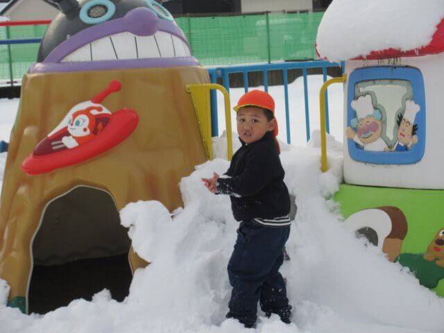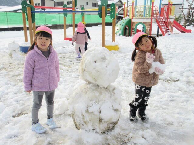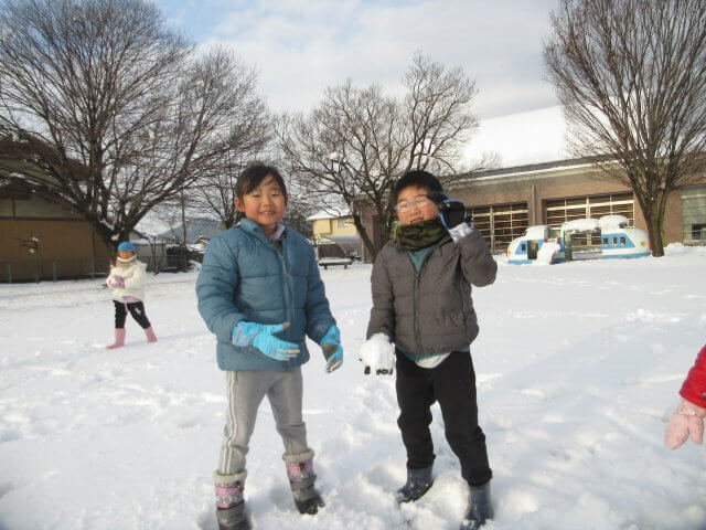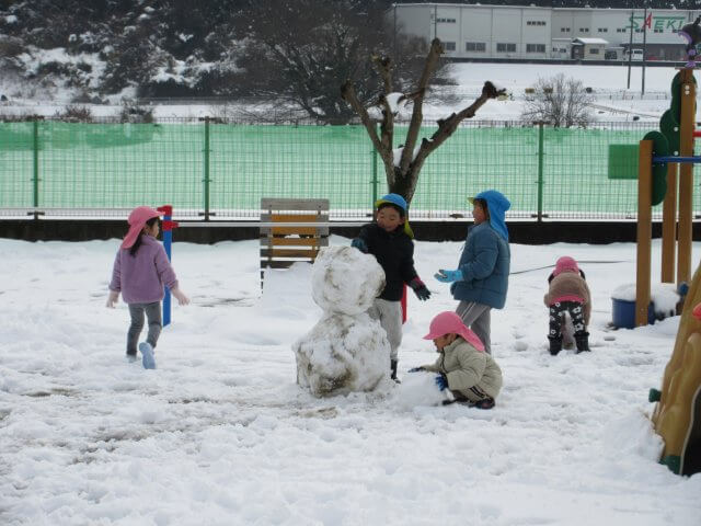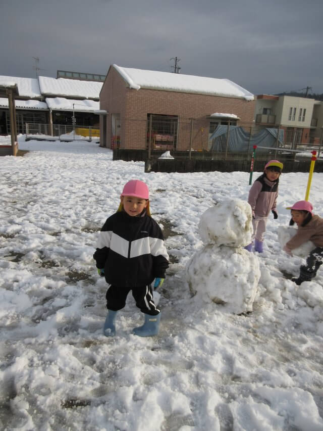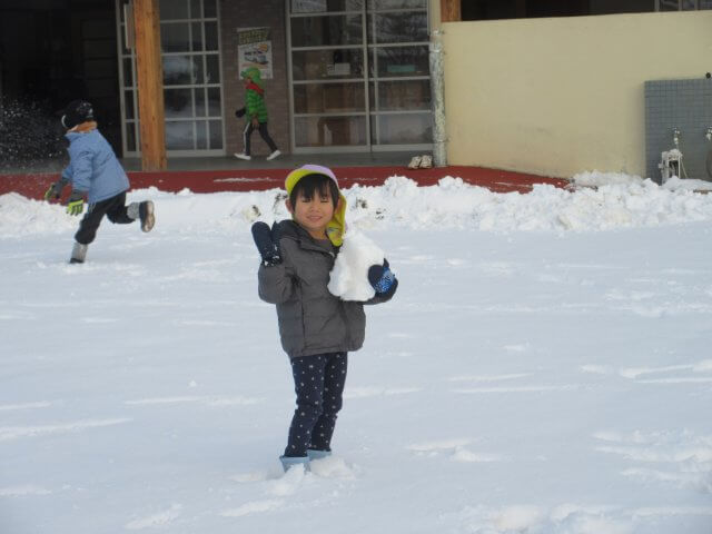 何年振りかの遊べるほどの雪が降りました。 子どもたちは、大はしゃぎ! 雪合戦や雪だるまづくりを楽しみました。